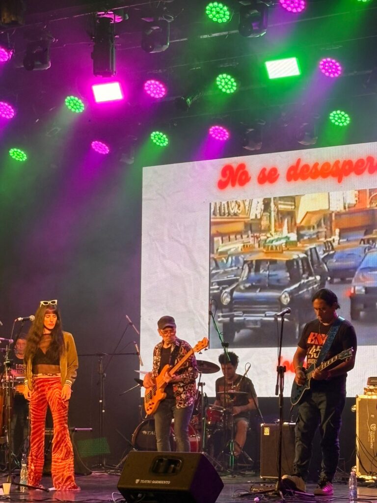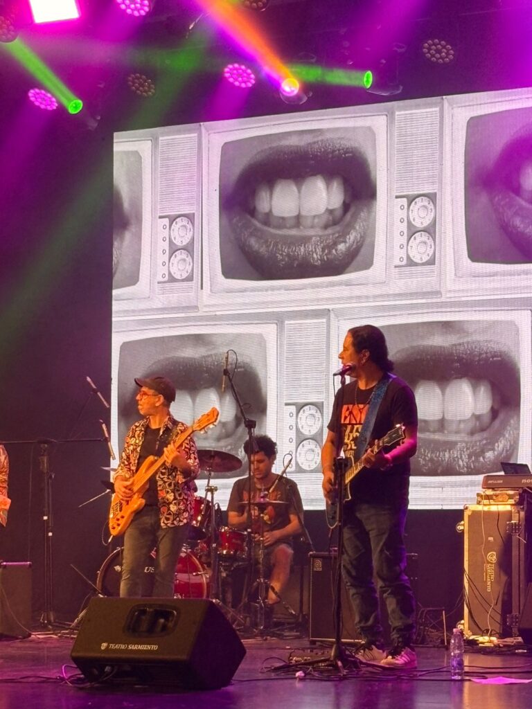 Con ese marco, el Teatro Sarmiento, recibió por primera vez a Los Abuelos de la Nada, banda q otrora liderara el gran poeta y siempre disruptivo Miguel Abuelo y que en la actualidad ese trono es ocupado por su hijo Gato Azul (así lo llaman), que acompañado por una buena banda (hay que decirlo) trajeron un combo de canciones emblemáticas que con tan solo nombrarlas ya te invitan a cantar, eso les otorga el diploma de “clásicos del rock nacional”, tales como Mil Horas, Costumbres Argentinas, Sin Gamulan, Chalaman y muchas más.